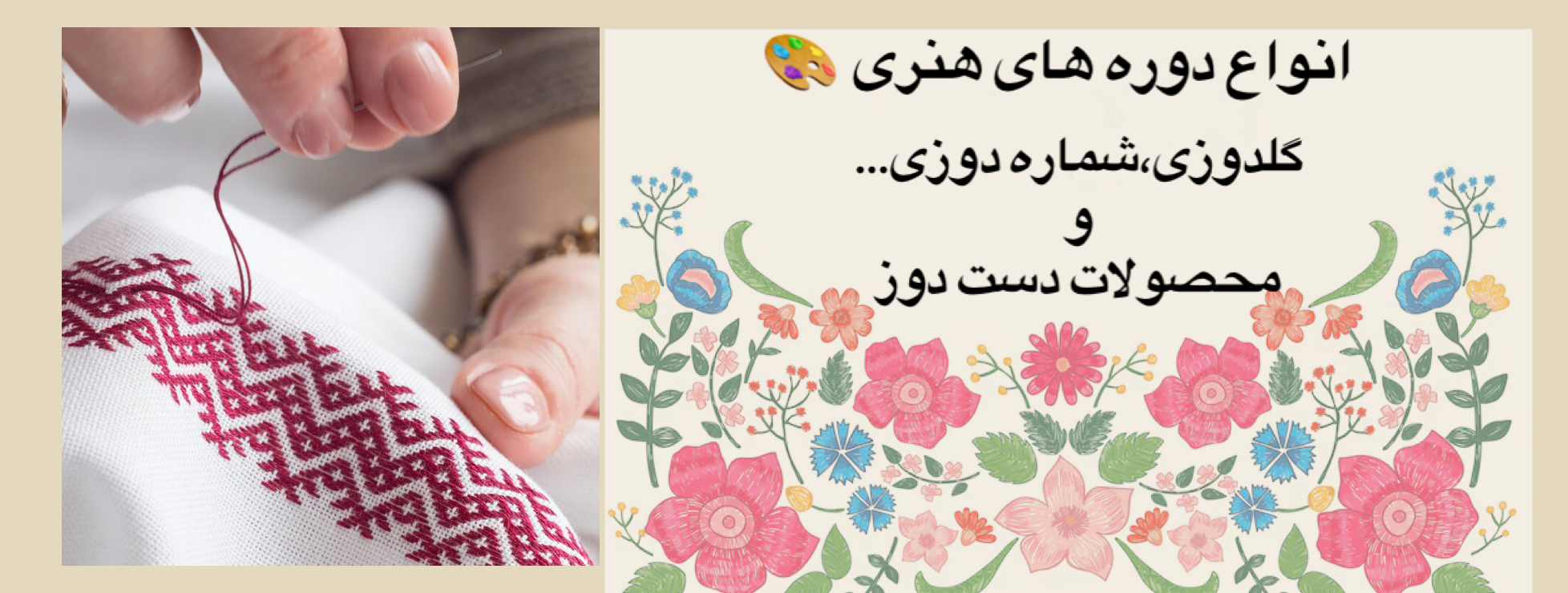 انواع دوره های هنری از جمله گلدوزی،شماره دوزی،درآمدزایی و ....