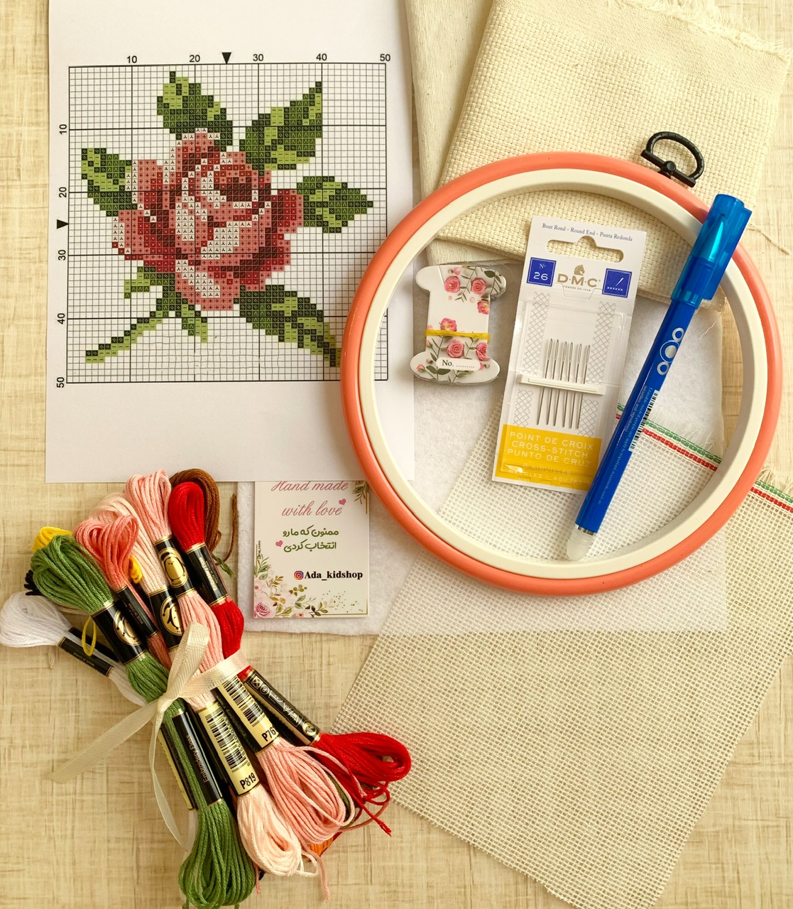 پک کامل لوازم اولیه شماره دوزی شامل :
