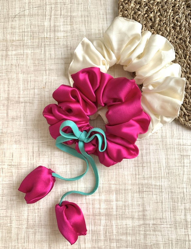 ✔️یک عدد با نوار و گل لاله و یک عدد اسکرانچی ساده میباشد