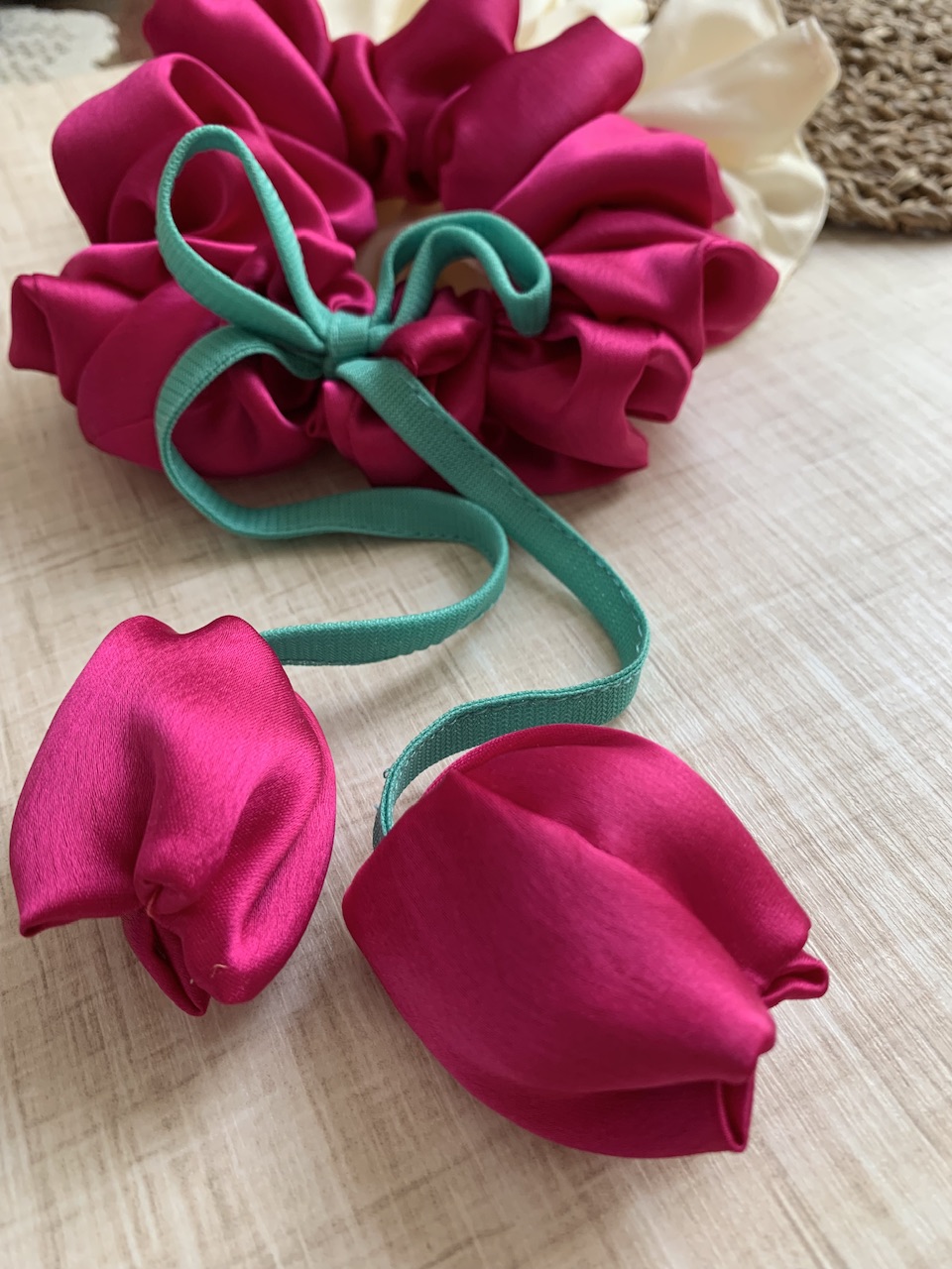 ✔️یک عدد با نوار و گل لاله و یک عدد اسکرانچی ساده میباشد